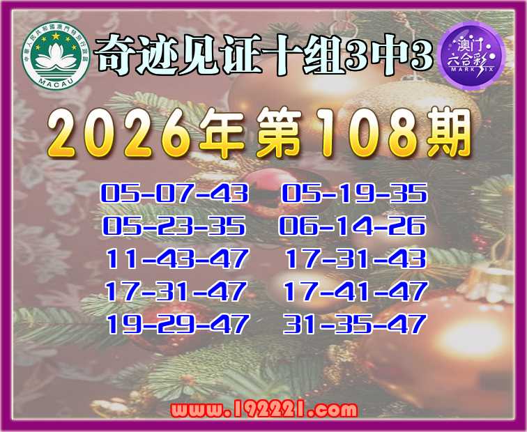 108期:『奇迹见证』 🌲十组3中3🌲