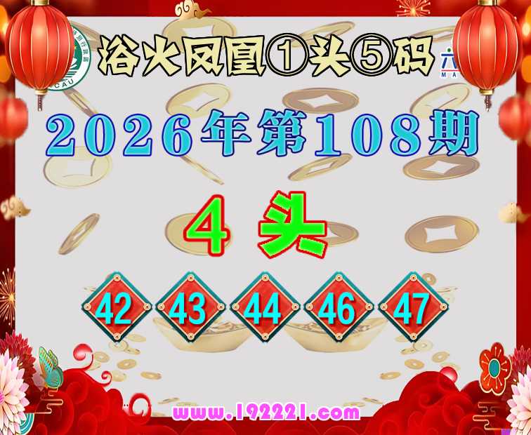 108期:【浴火凤凰】 🥩①头⑤码🥩【4头主:42.43.44.46.47】开:45
