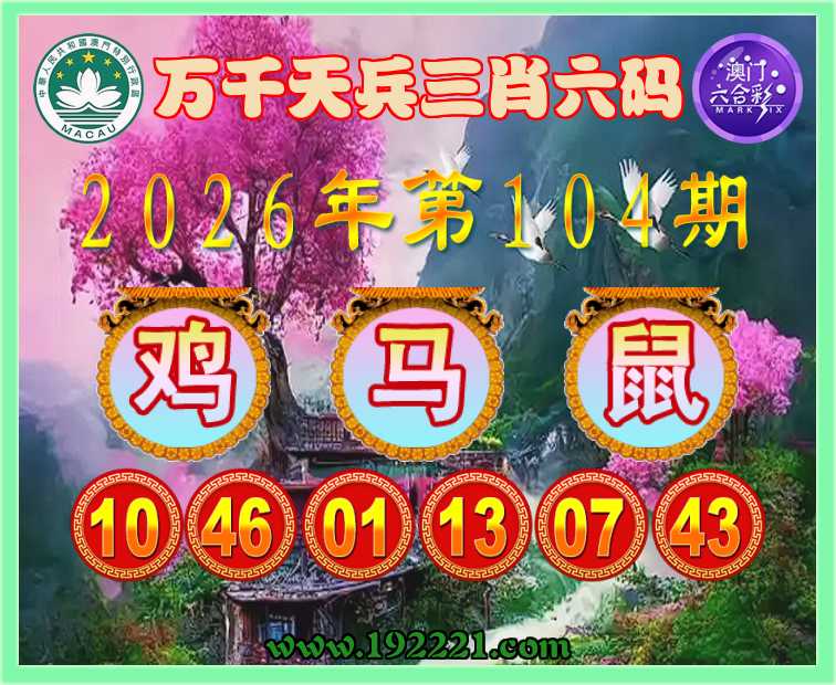 104期:〖万千天兵〗 🍖三肖六码🍖【鸡鼠】开:马01